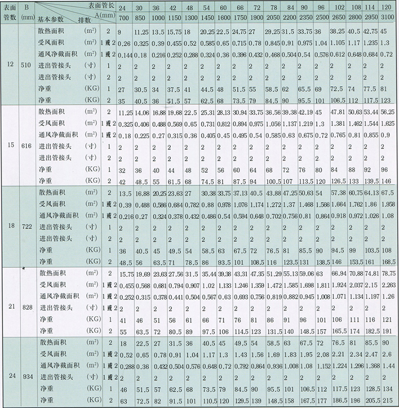 UⅡ型蒸汽散熱器技術(shù)參數(shù)